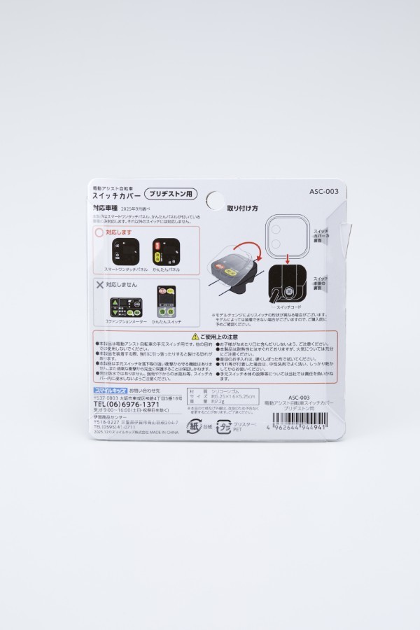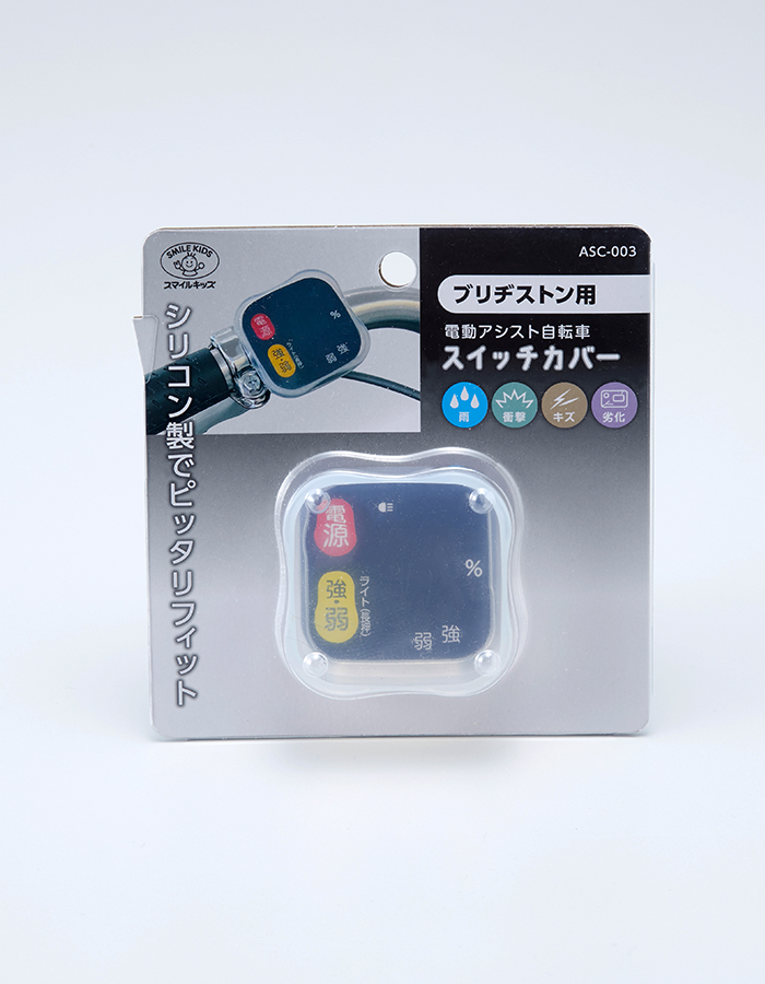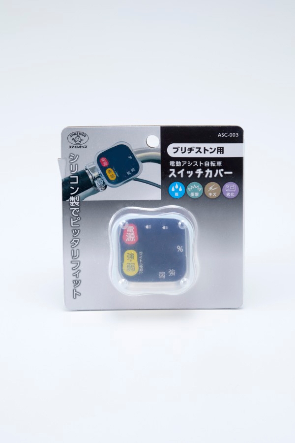 BRIDGESTONE電動アシスト自転車のスイッチをカバーするように取り付け、雨・衝撃からスイッチを守る商品。